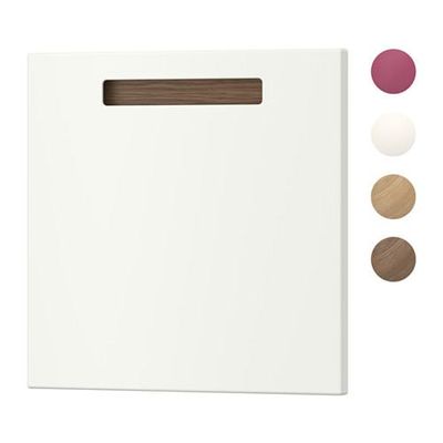 Выберите наклейку, приклейте ее на ручку и вставьте ручку в дверцу.