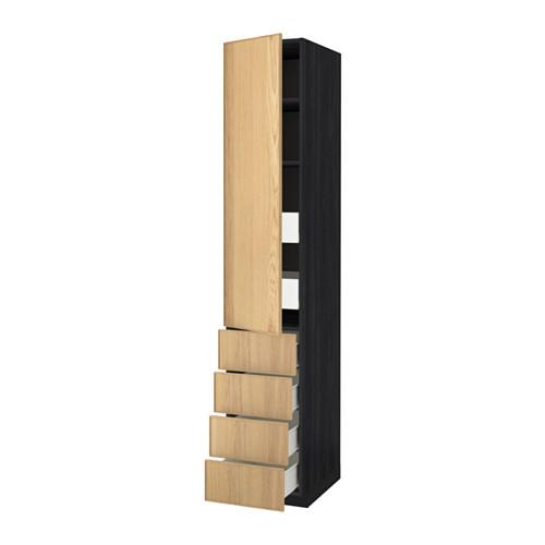 МЕТОД / ФОРВАРА Выс шкаф с плк/6 ящк/ дверц/4 фрнт - 40x60x220 см, Экестад дуб, под дерево черный
