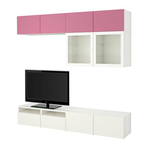 БЕСТО Шкаф для ТВ, комбин/стеклян дверцы - Лаппвикен розовый/Синдвик белый прозрачное стекло, направляющие ящика,нажимные