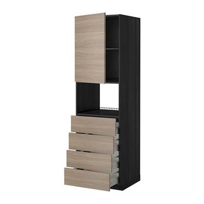 МЕТОД / МАКСИМЕРА Высок шкаф д/духовки/дверца/4ящика - 60x60x200 см, Брокхульт под грецкий орех светло-серый, под дерево черный