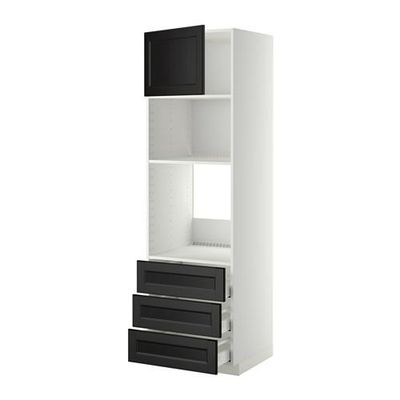 МЕТОД / МАКСИМЕРА Высок шкаф д/духовки/СВЧ/дверца/3ящ - 60x60x200 см, Лаксарби черно-коричневый, белый