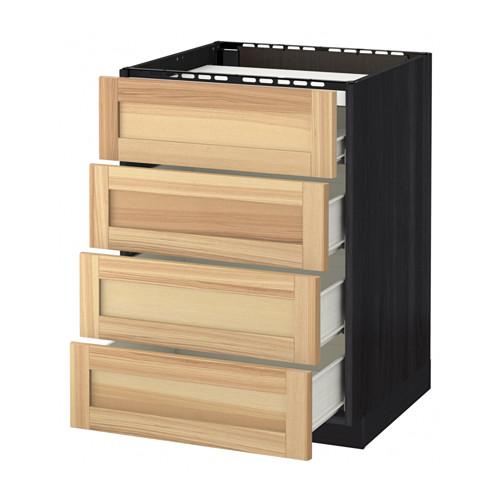 МЕТОД / ФОРВАРА Напольн шкаф/4фронт пнл/4ящика - под дерево черный, Торхэмн естественный ясень, 60x60 см