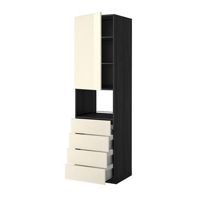 МЕТОД / ФОРВАРА Высок шкаф д/духовки/дверца/4ящика - 60x60x220 см, Рингульт глянцевый кремовый, под дерево черный