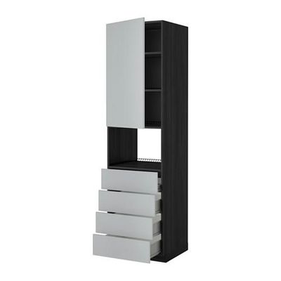 МЕТОД / ФОРВАРА Высок шкаф д/духовки/дверца/4ящика - 60x60x220 см, Веддинге серый, под дерево черный