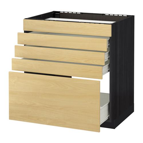 МЕТОД / ФОРВАРА Напольн шк д/вар панели/5фасад/4ящ - 80x60 см, Тингсрид под березу, под дерево черный