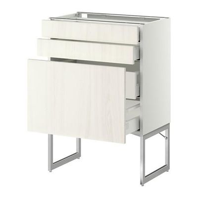 МЕТОД / МАКСИМЕРА Напольн шкаф 3фронт пнл/2низ/2ср ящ - 60x37x60 см, Росдаль белый ясень, белый