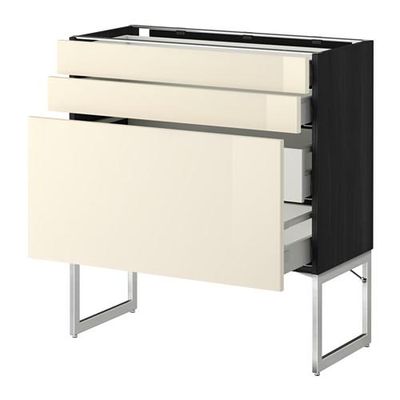 МЕТОД / МАКСИМЕРА Напольн шкаф 3фронт пнл/2низ/2ср ящ - 80x37x60 см, Рингульт глянцевый кремовый, под дерево черный