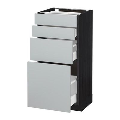 МЕТОД / МАКСИМЕРА Напольн шкаф 4 фронт панели/4 ящика - 40x37 см, Веддинге серый, под дерево черный
