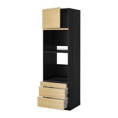 МЕТОД / МАКСИМЕРА Выс шкаф д/дхвк/комб дхвк+двр/3ящ - 60x60x200 см, Тингсрид под березу, под дерево черный