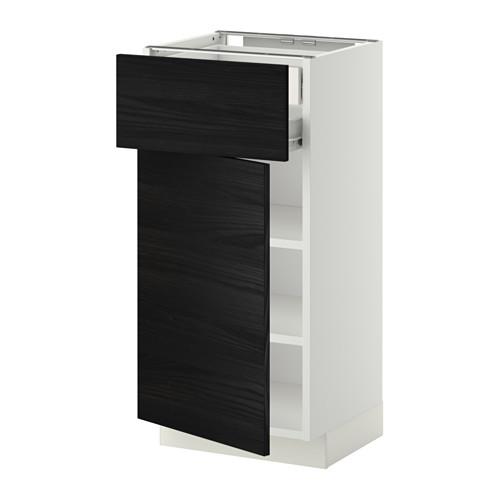 МЕТОД / ФОРВАРА Напольн шкаф двр/фр пнл/плк/2низ ящ - белый, Тингсрид под дерево черный, 40x37 см