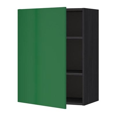 МЕТОД Шкаф навесной с полкой - 60x80 см, Флэди зеленый, под дерево черный