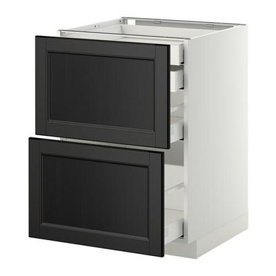 МЕТОД / МАКСИМЕРА Напл шк 2 фрнт/2низ/1срд/1 выс ящ - 60x60 см, Лаксарби черно-коричневый, белый