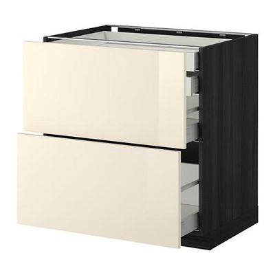 МЕТОД / МАКСИМЕРА Напольн шкаф 2фрнт/2выс ящ - 60x60 см, Рингульт глянцевый кремовый, под дерево черный 0.0/5 оценка (0 голосов)