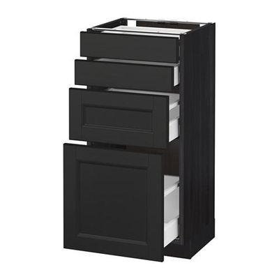МЕТОД / МАКСИМЕРА Напольн шкаф 4 фронт панели/4 ящика - 40x37 см, Лаксарби черно-коричневый, под дерево черный