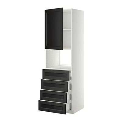 МЕТОД / ФОРВАРА Высок шкаф д/духовки/дверца/4ящика - 60x60x200 см, Лаксарби черно-коричневый, белый