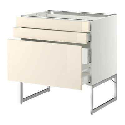 МЕТОД / МАКСИМЕРА Напольн шкаф 3фронт пнл/2низ/2ср ящ - 80x60x60 см, Рингульт глянцевый кремовый, белый