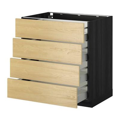 МЕТОД / МАКСИМЕРА Напольн шкаф 4 фронт панели/4 ящика - 80x60 см, Тингсрид под березу, под дерево черный