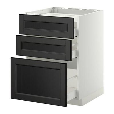 МЕТОД / МАКСИМЕРА Напольн шкаф/3фронт пнл/3ящика - 60x60x60 см, Лаксарби черно-коричневый, белый 0.0/5 оценка (0 голосов)