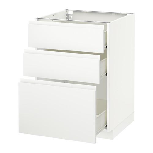МЕТОД / ФОРВАРА Напольный шкаф с 3 ящиками - белый, Воксторп белый, 60x60 см
