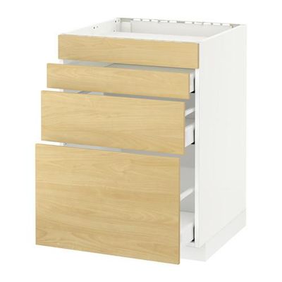 МЕТОД / МАКСИМЕРА Нап шкаф д/духовки/4фасада/3ящика - 60x60 см, Тингсрид под березу, белый