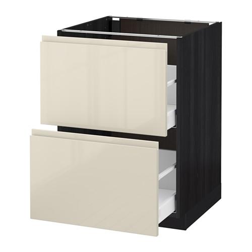 МЕТОД / МАКСИМЕРА Напольн шкаф 2фрнт/2выс ящ - под дерево черный, Воксторп глянцевый светло-бежевый, 60x60 см