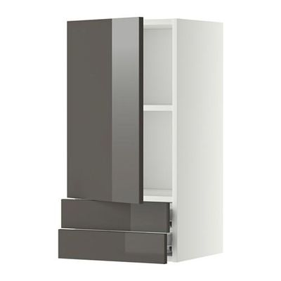 МЕТОД / ФОРВАРА Навесной шкаф с дверцей/2 ящика - 40x100 см, Рингульт глянцевый серый, белый 0.0/5 оценка (0 голосов)