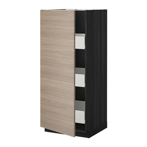 МЕТОД / ФОРВАРА Высокий шкаф с ящиками - Брокхульт под грецкий орех светло-серый, под дерево черный