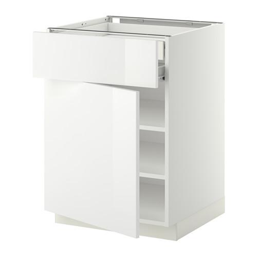 МЕТОД / ФОРВАРА Напольн шкаф двр/фр пнл/плк/2низ ящ - белый, Рингульт глянцевый белый, 60x60 см