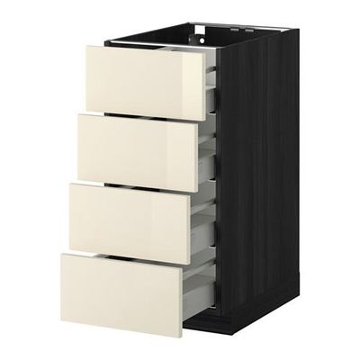 МЕТОД / МАКСИМЕРА Напольн шкаф 4 фронт панели/4 ящика - 40x60 см, Рингульт глянцевый кремовый, под дерево черный