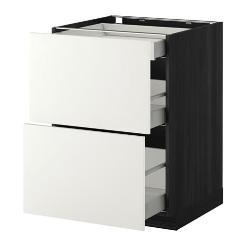 МЕТОД / МАКСИМЕРА Напольный шкаф/2фасада/3ящика - под дерево черный, Хэггеби белый, 60x60 см