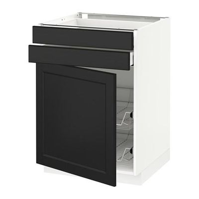 МЕТОД / МАКСИМЕРА Напольн шкаф/дверца/2ящ/првл крзн - 60x60 см, Лаксарби черно-коричневый, белый