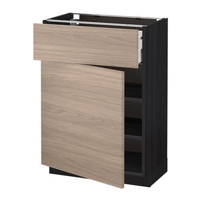 МЕТОД / МАКСИМЕРА Напольный шкаф с ящиком/дверью - 60x37 см, Брокхульт под грецкий орех светло-серый, под дерево черный