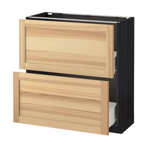 МЕТОД / ФОРВАРА Напольный шкаф с 2 ящиками - под дерево черный, Торхэмн естественный ясень, 80x37 см