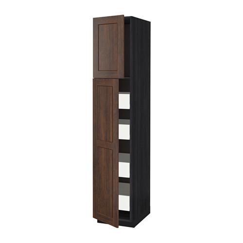 МЕТОД / ФОРВАРА Высокий шкаф/2дверцы/4ящика - под дерево черный, Эдсерум под дерево коричневый, 40x60x200 см