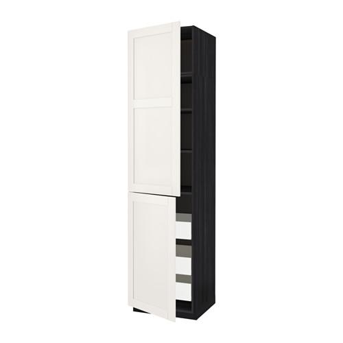 МЕТОД / ФОРВАРА Высокий шкаф+полки/3 ящика/2 дверцы - под дерево черный, Сэведаль белый, 60x60x240 см