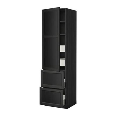 МЕТОД / ФОРВАРА Высокий шкаф+полки/4 ящика/2дверцы - 60x60x220 см, Лаксарби черно-коричневый, под дерево черный