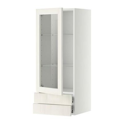 МЕТОД / ФОРВАРА Навесной шкаф/стекл дверца/2 ящика - 40x100 см, Росдаль белый ясень, белый