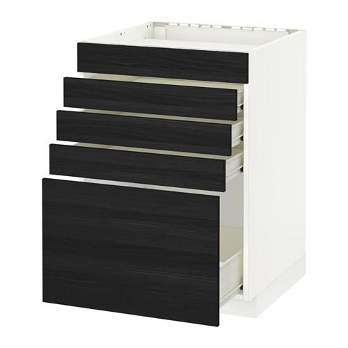 МЕТОД / ФОРВАРА Напольн шк д/вар панели/5фасад/4ящ - 60x60 см, Тингсрид под дерево черный, белый