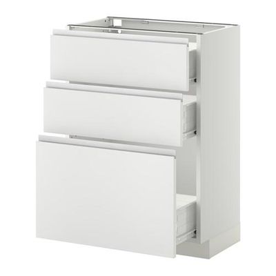 МЕТОД / ФОРВАРА Напольный шкаф с 3 ящиками - 60x37 см, Нодста белый/алюминий, белый