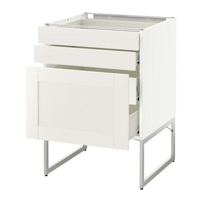 МЕТОД / ФОРВАРА Напольн шкаф 3фронт пнл/2низ/2ср ящ - 60x60x60 см, Сэведаль белый, белый