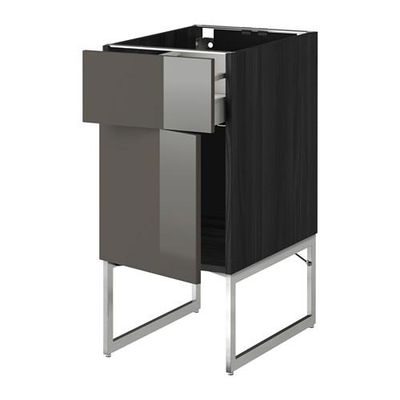 МЕТОД / МАКСИМЕРА Напольный шкаф с ящиком/дверью - 40x60x60 см, Рингульт глянцевый серый, под дерево черный