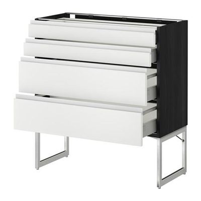 МЕТОД / МАКСИМЕРА Нплн шк 4 фронт/2 низк/2средн ящ - 80x37x60 см, Нодста белый/алюминий, под дерево черный