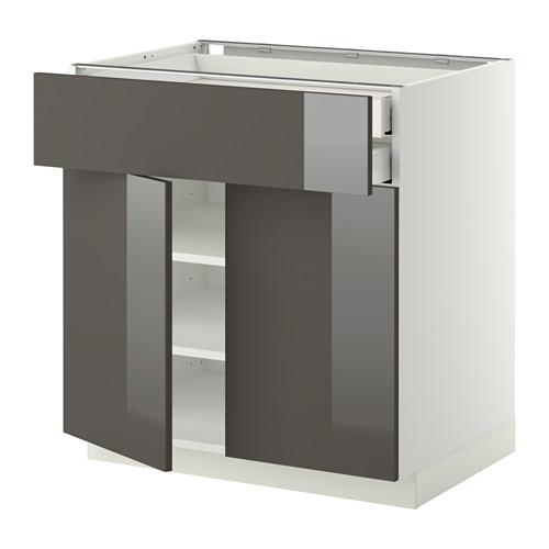 МЕТОД / МАКСИМЕРА Напольный шкаф/2дверцы/2ящика - белый, Рингульт глянцевый серый