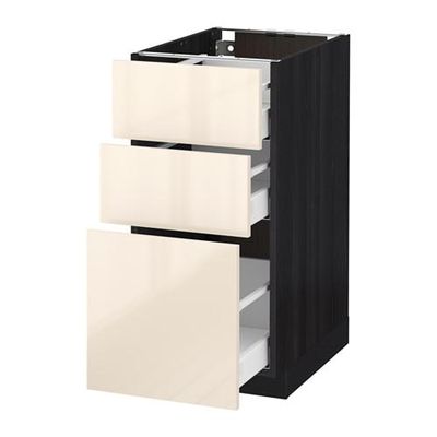 МЕТОД / МАКСИМЕРА Напольный шкаф с 3 ящиками - 40x60 см, Рингульт глянцевый кремовый, под дерево черный