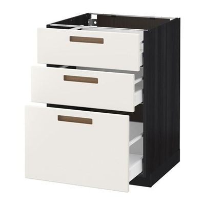 МЕТОД / МАКСИМЕРА Напольный шкаф с 3 ящиками - 60x60 см, Мэрста белый, под дерево черный