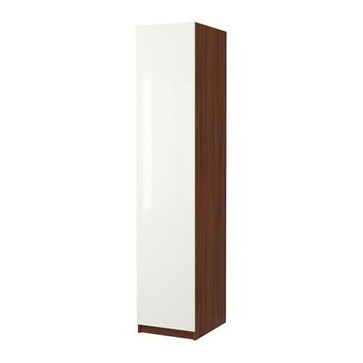ПАКС Гардероб с 1 дверью - Фардаль глянцевый белый, классический коричневый, 50x60x236 см, плавно закрывающиеся петли