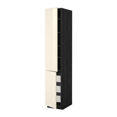 МЕТОД / ФОРВАРА Высокий шкаф+полки/3 ящика/2 дверцы - 40x60x220 см, Рингульт глянцевый кремовый, под дерево черный