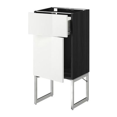 МЕТОД / ФОРВАРА Напольный шкаф с ящиком/дверью - под дерево черный, Рингульт глянцевый белый, 40x37x60 см