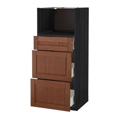 МЕТОД / ФОРВАРА Высокий шкаф д/СВЧ с 3 ящиками - Филипстад коричневый, под дерево черный