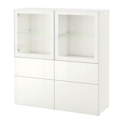БЕСТО Комбинация д/хранения+стекл дверц - белый/Сельсвикен глянцевый/белый прозрачное стекло 0.0/5 оценка (0 голосов)